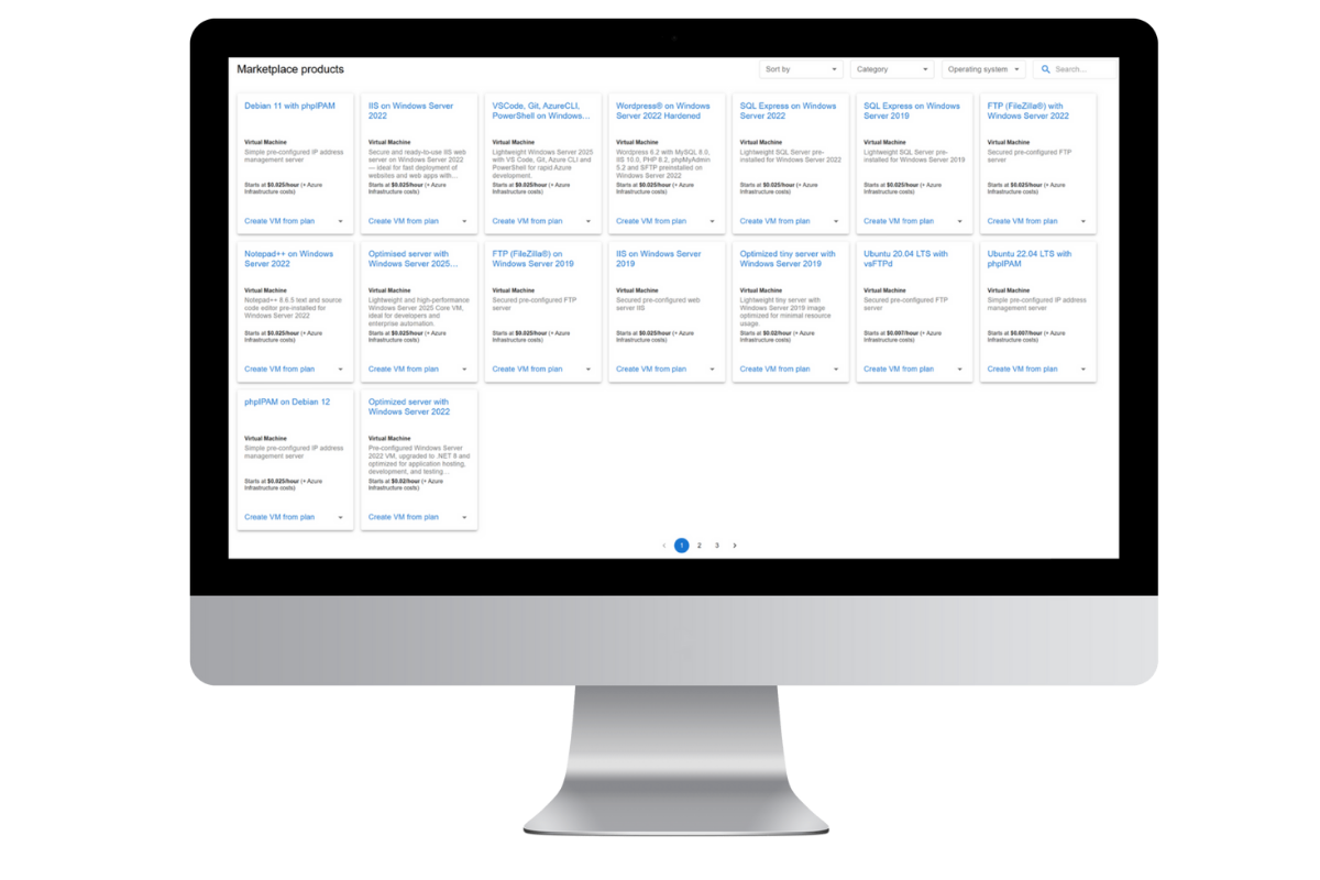 We offer a diverse range of virtual machine images tailored for various business objectives. Experience all the advantages of cloud technologies with our pre-configured images